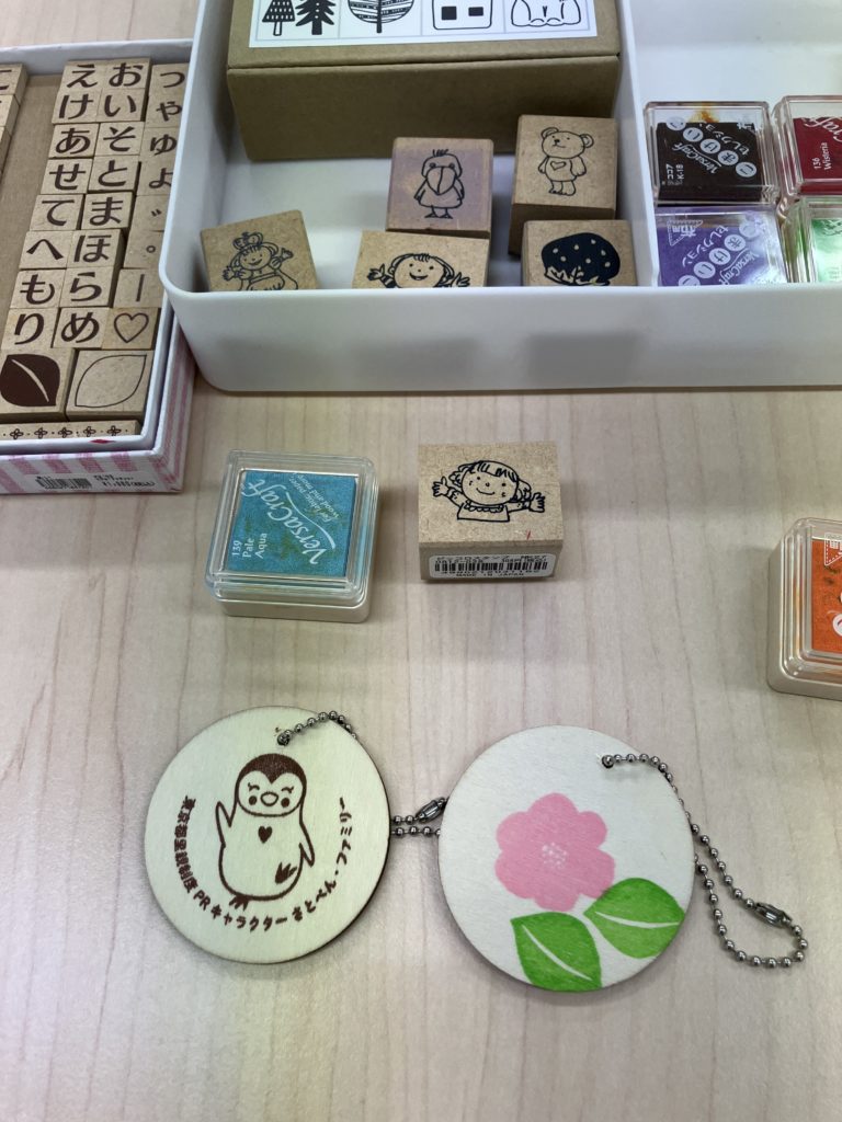 ワークショップでは、木のキーホルダーにスタンプでデコレーション♪