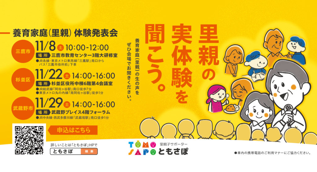 里親さんのリアルな声を聞くことができるチャンスです。ぜひお気軽にご参加いただければと思います。